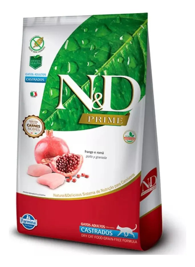 N&D Prime Feline Castrado es una alimento completo y balanceado para gatos adultos castrados. Contiene proteína de pollo de alta calidad y un óptimo equilibrio de minerales. Está enriquecido con frutas y legumbres, y esencias botánicas como Té Verde, Alfalfa, Aloe Vera y Psyllium.