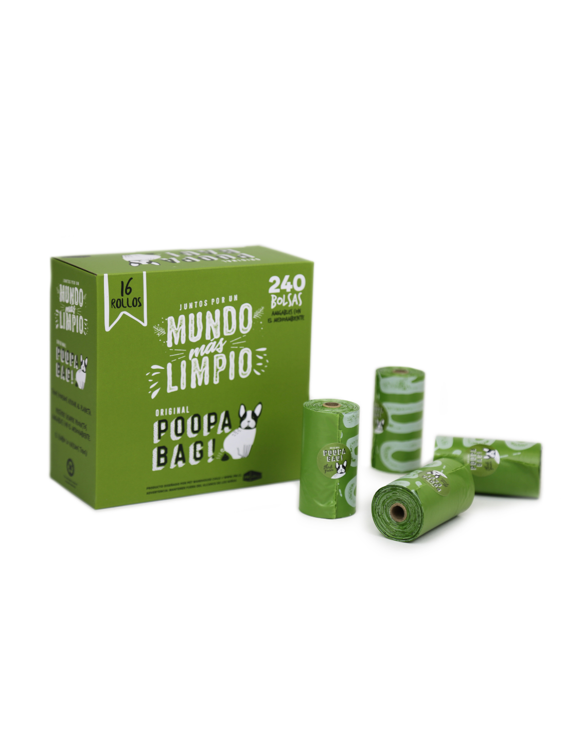 POOPA BAG es la única bolsa extra resistente para recoger la caca de nuestros perros, la transforma en una fácil y amplia opción para recoger cómodamente los desechos de nuestras mascotas. El sellado de alta eficiencia en la parte inferior evita rupturas indeseadas y con ello el contacto o caída de las heces desde la bolsa. Lo más grandioso de las POOPA BAGS es su tecnología EPI, que gracias a su proceso de OXO-BIODEGRADACIÓN, la transforma en la única bolsa en Chile, que al cabo de meses se degrada en un 100%, transformando la POOPA BAG en un material benigno para el medio ambiente.