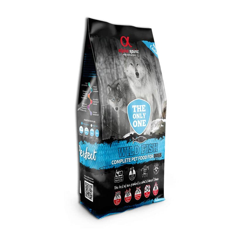 he Only One Wild Fish by Alpha Spirit es un alimento diseñado para alimentar a tu perro adulto de manera tradicional. Libre de cereales, libre de gluten y libre de harinas cárnicas, de fabricación propia, empleando ingredientes naturales y frescos de categoría alimentaria humana. Lo más importante es que esta comida NO ESTÁ EXTRUSIONADA. Este producto ha sido elaborado con pescado fresco entero. Sus ingredientes frescos se cocinan a baja temperatura, conservando todos sus nutrientes, vitaminas y minerales. Este producto no contiene grasas añadidas, y no contiene granos ni gluten. Con una alimentación más natural, su perro estará lleno de energía, saludable y ¡Con un hermoso y brillante pelaje!