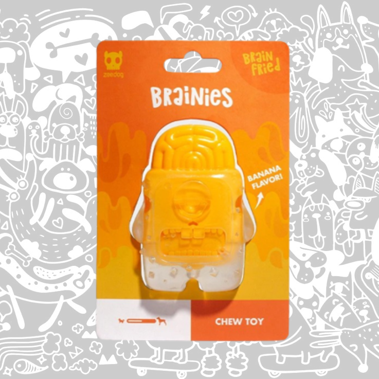 Zee.Dog Brain Fried es un juguete masticable para perros con delicioso sabor a plátano. Hecho de caucho resistente y nylon para el disfrute de tu perro. Brain Fried es un juguete masticable para una diversión duradera. Brain Fried es ideal para perros de mordedura liviana o fuerte. Su capa externa es perfecta para mordeduras suaves, mientras que su capa interna resiste mordidas más fuertes.